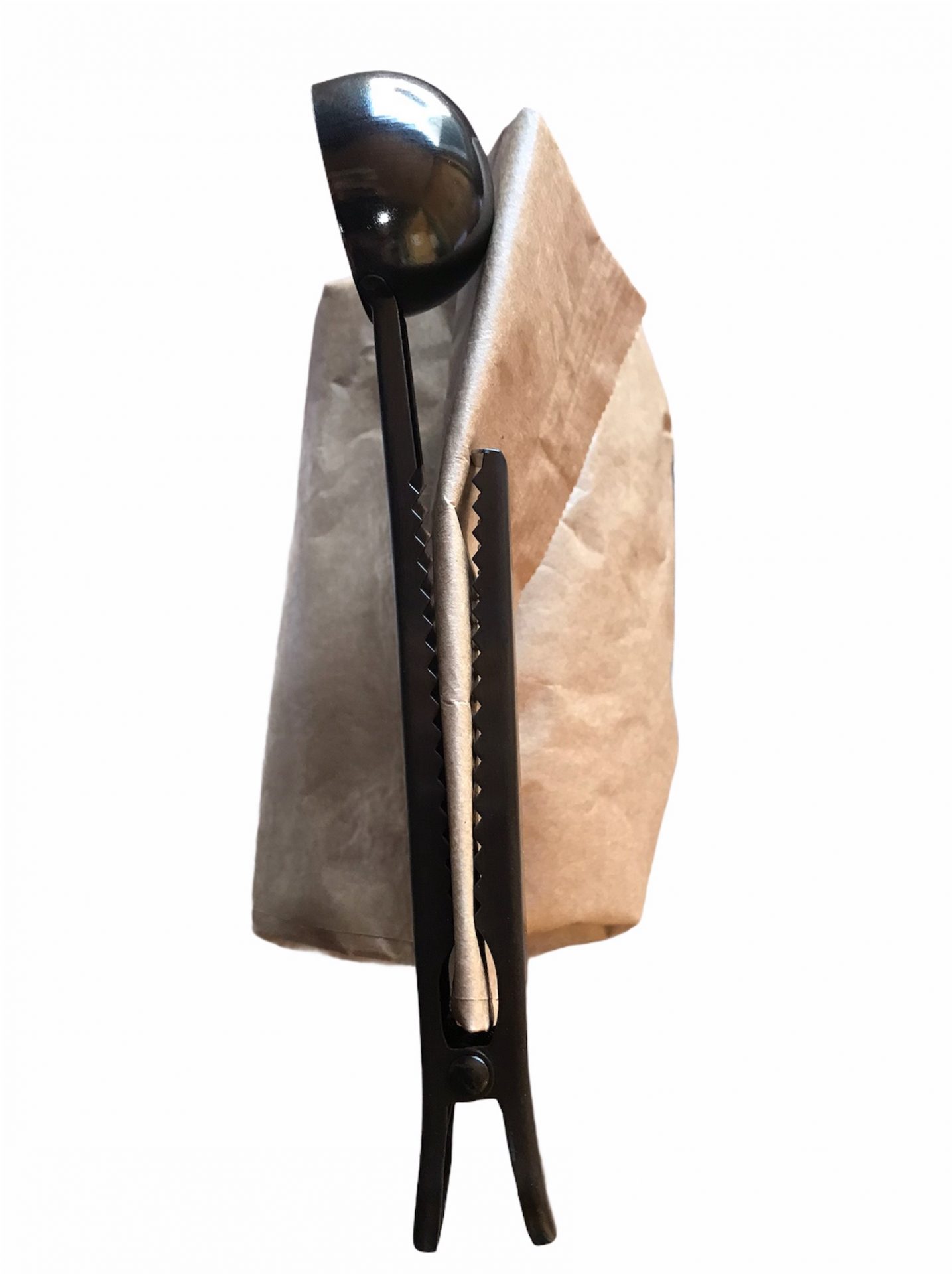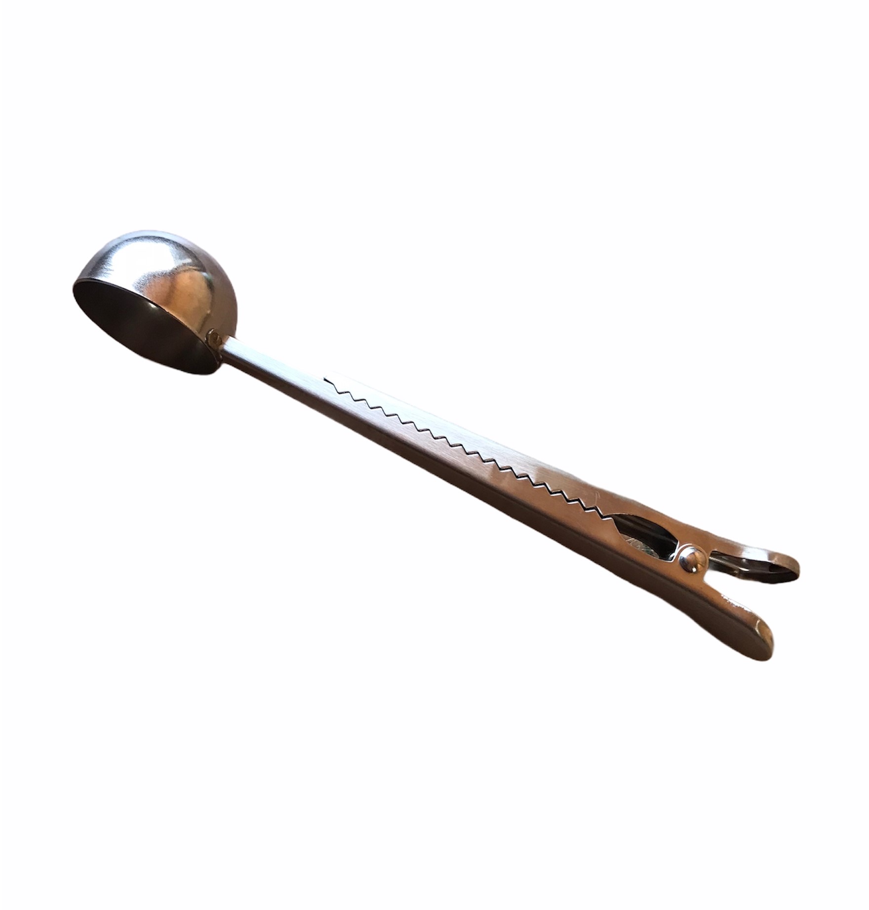 Durable Stainless Steel Coffee/Tea scoop with a Sealing clip to keep the bag contents fresh.